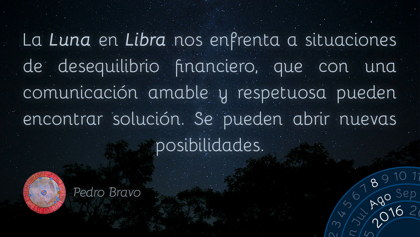 La Luna en Libra nos enfrenta a situaciones de desequilibrio financiero, que con una comunicación amable y respetuosa pueden encontrar solución. Se pueden abrir nuevas posibilidades.